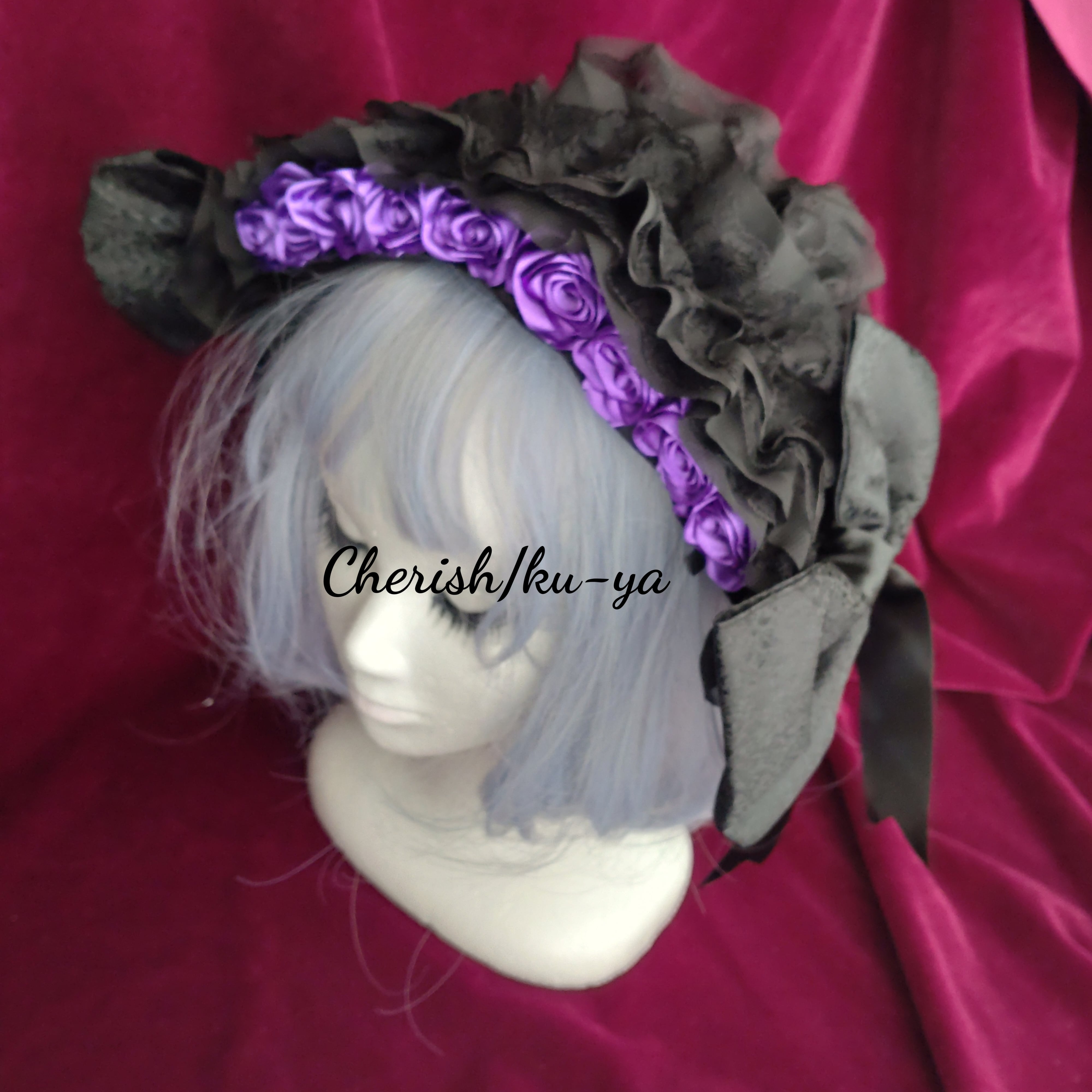 リボンで作った薔薇とボリュームのあるレースをあしらった